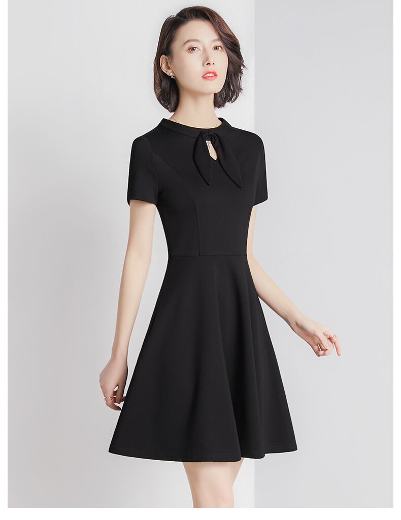 ワンピース ノースリーブ 半袖 ミニ丈 フレア リボン シンプル 無地 きれいめ 上品 お呼ばれ