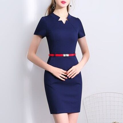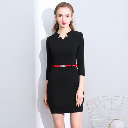 ワンピース 七分袖 半袖 ミニ ショート タイト 細身 ブラック ブルー ベルト 夏 春 秋