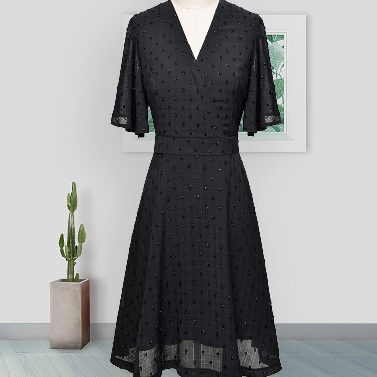 ワンピース 半袖 膝丈 フレア シフォン 透け感 きれいめ シンプル 無地 上品 お呼ばれ デート