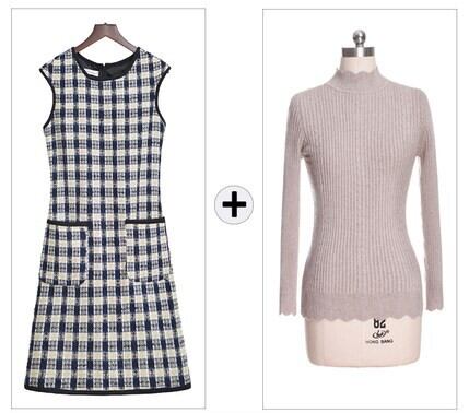 ミニ丈ワンピースとセーターのセットアップ商品です。