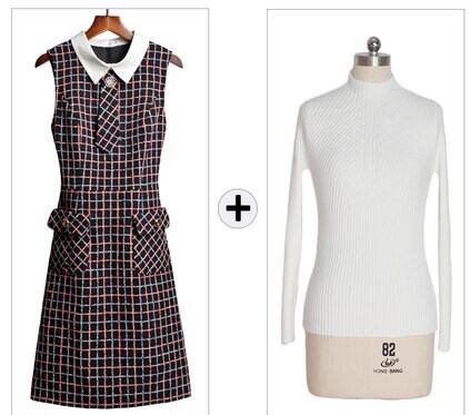 セットアップ ワンピース ミニ ショート 襟 ブラック ホワイト セーター 秋 冬 デート お出かけ