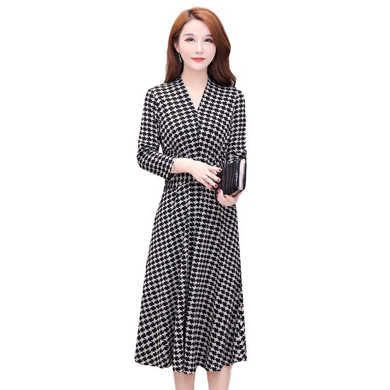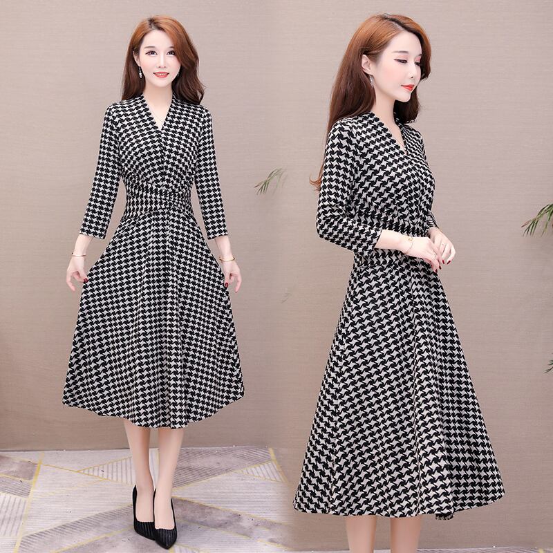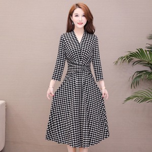ワンピース 長袖 ひざたけ フレア 千鳥格子柄 きれいめ 上品 フォーマル デート お出かけ 秋