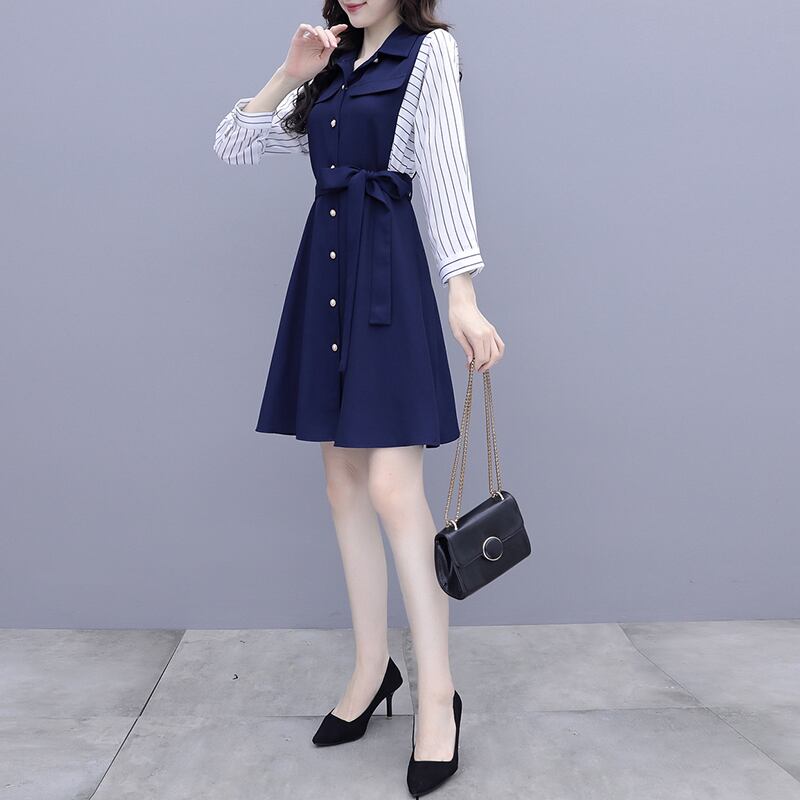 ワンピース 長袖 ミニ丈 ドッキングデザイン フロントボタン ウエストリボン きれいめ 上品 お呼ばれ