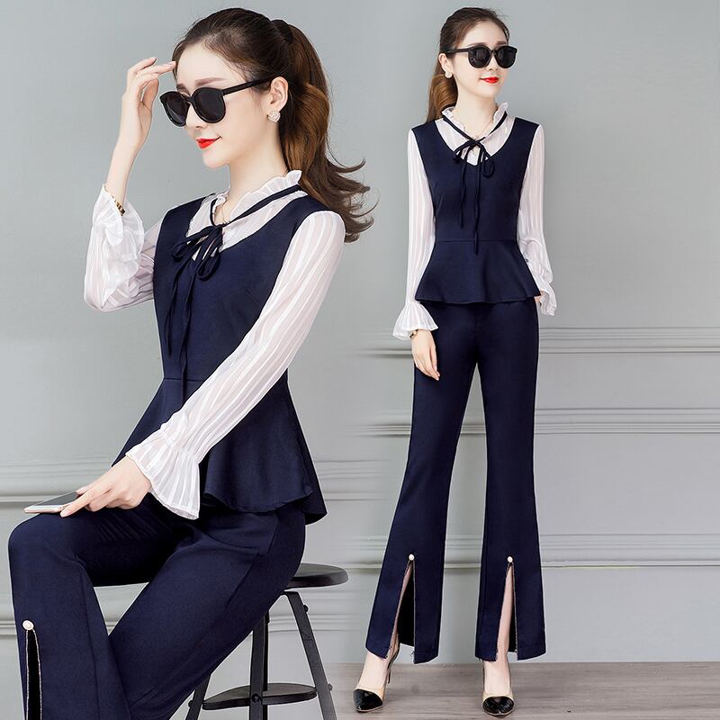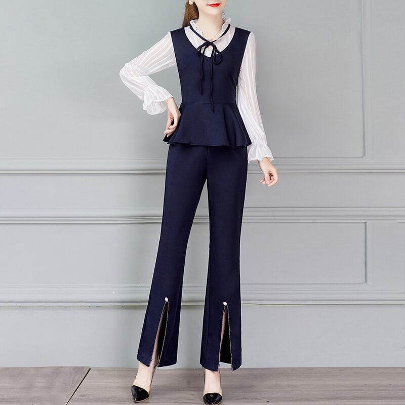 セットアップ ツーピース スーツ 長袖 ブラウス 透け感 ロング パンツ スリット 細身 きれいめ 上品