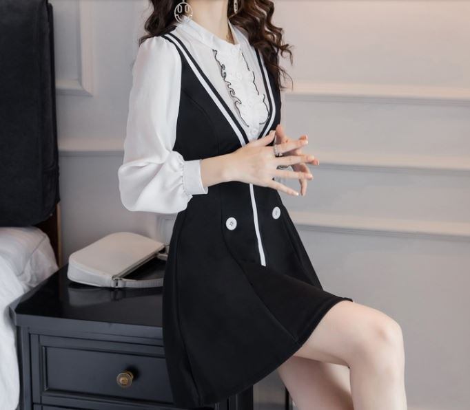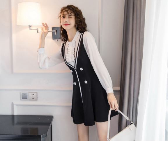 きれいめな重ね着風デザインのミニ丈ワンピースです♪