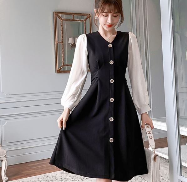 ワンピース 長袖 膝丈 フレア Vネック フロントボタン きれいめ 大人カジュアル デート お出かけ 秋