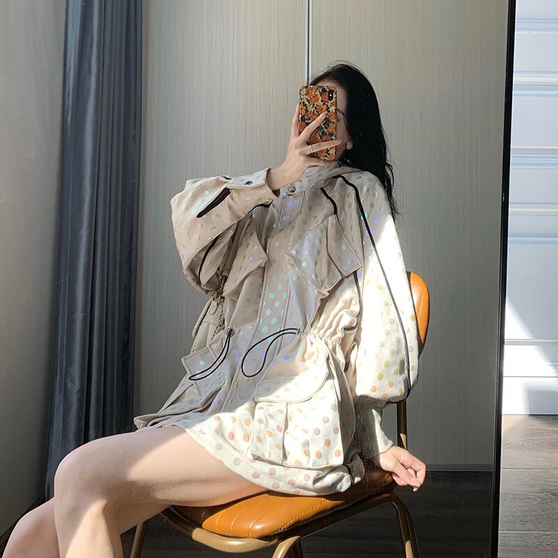 ブルゾン パーカー ウィンドブレーカー 長袖 フード付き ドット柄 水玉 スポーティー カジュアル 秋