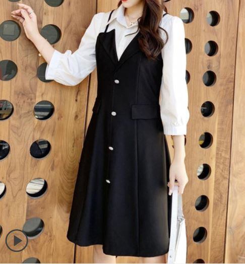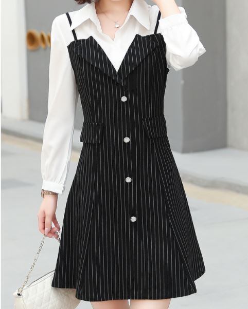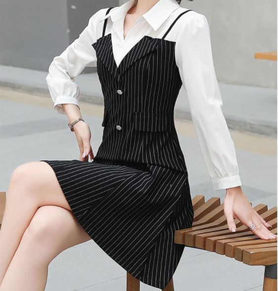 シンプルな無地デザインの長袖ブラウスとミニ丈ワンピースのツーピースです♪