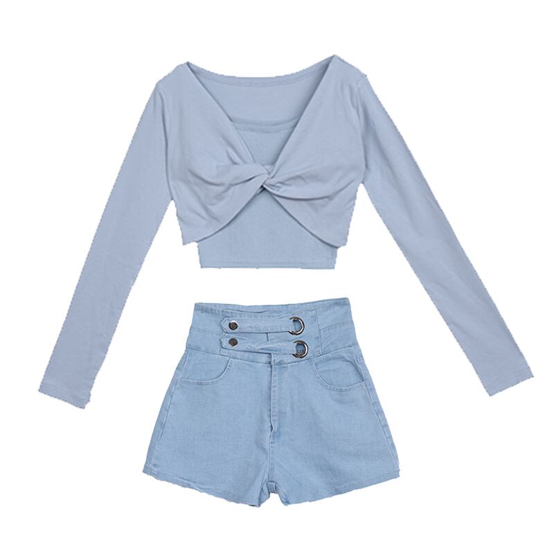 セットアップ ツーピース キャミソール カットソー ショートパンツ シンプル 無地 カジュアル 秋