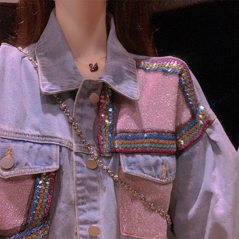 ジャケット デニムジャケット Gジャン 長袖 スパンコール キラキラ 大人カジュアル デート お出かけ