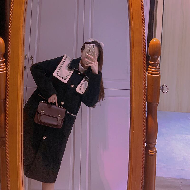 コート ブラック セーラー レトロ 膝丈
