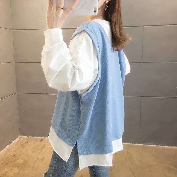 ツーピース カットソー 長袖 ベスト ノースリーブ シンプル 無地 カジュアル ゆったり 秋