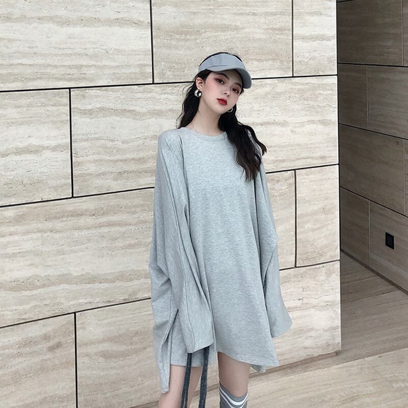 ツーピース カットソー ニットビスチェ 長袖 シンプル 無地 大人カジュアル ゆったり ロング丈 秋