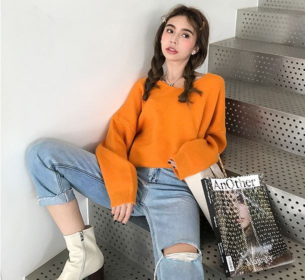 ニット セーター 長袖 シンプル 無地 大人カジュアル Vネック 薄手 ゆったり ビッグサイズ 秋