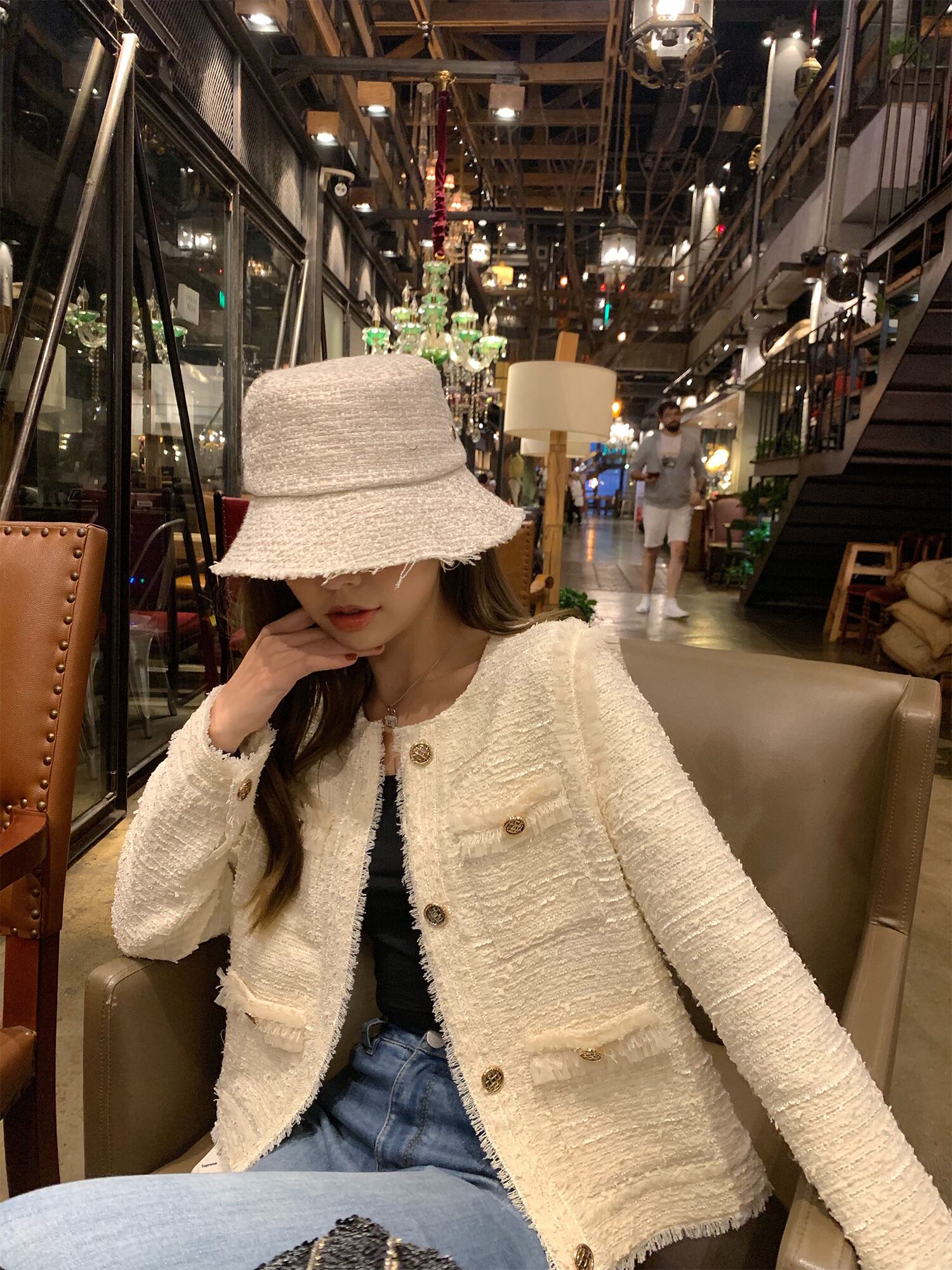 きれいめなツイード素材の長袖ジャケットです♪