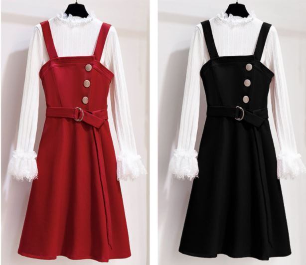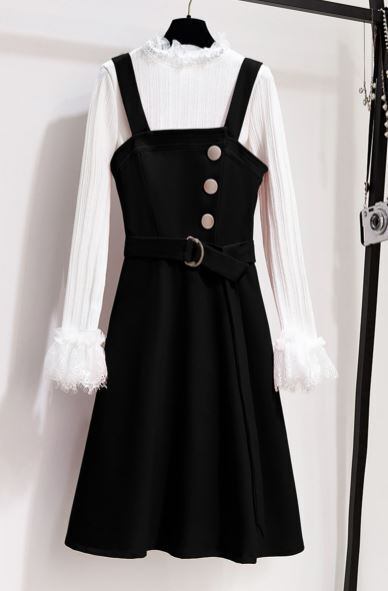 セットアップ ツーピース 長袖 カットソー ワンピース ノースリーブ 膝丈 フレア ウエストベルト