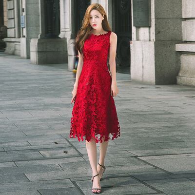 きれいめなリーフレースデザインの膝丈ワンピースです♪
