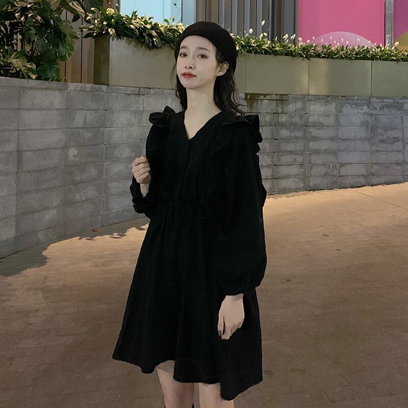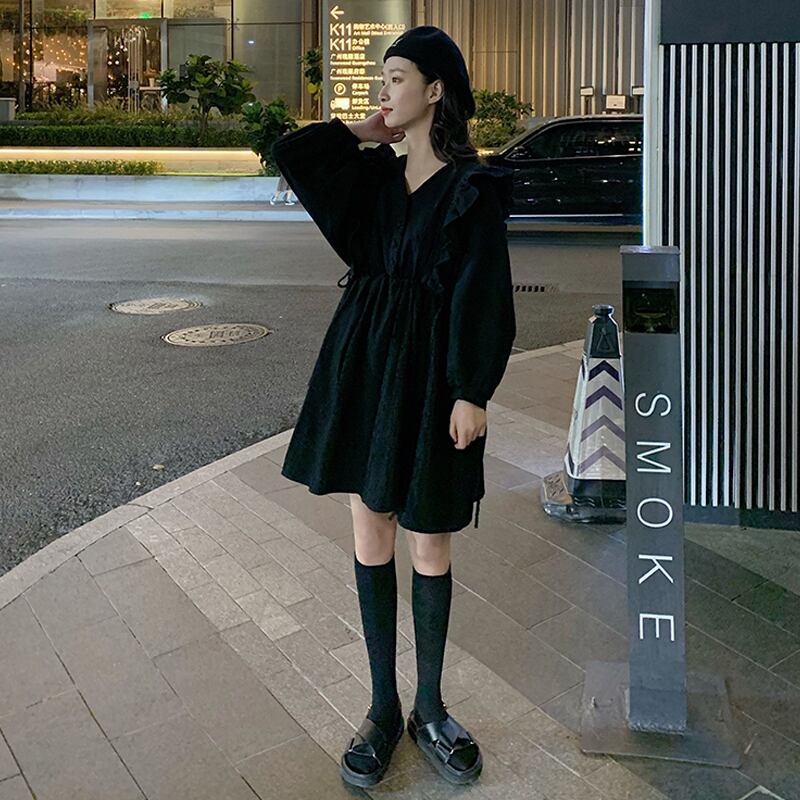 ワンピース シャツワンピース 長袖 ミニ丈 フレア フリル シンプル 無地 大人カジュアル デート