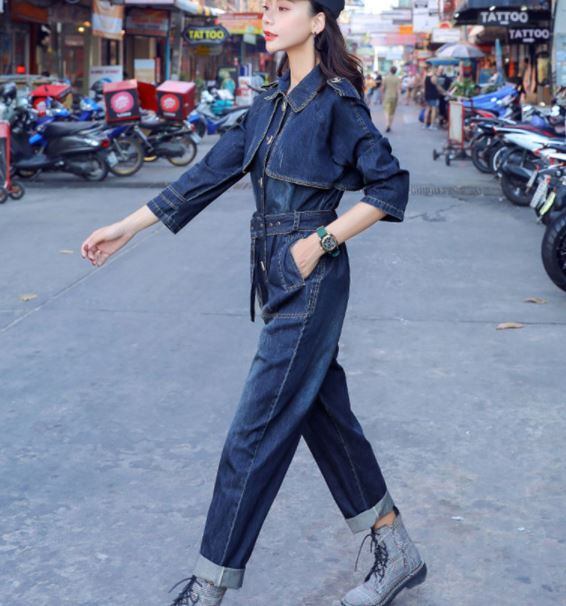 オールインワン ジャンプスーツ デニム ウエストベルト 大人カジュアル ゆったり デート お出かけ