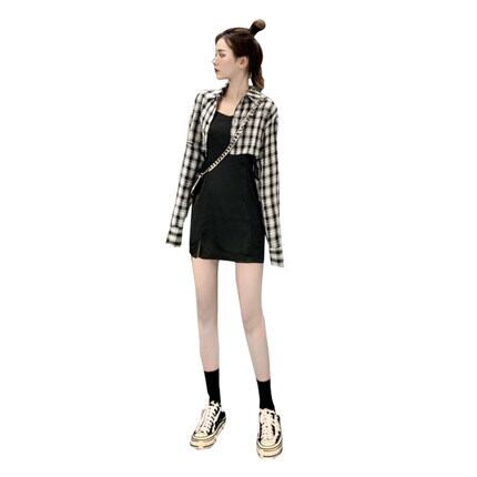 ツーピース ワンピース スリム タイト カーディガン チェック ブラック セクシー