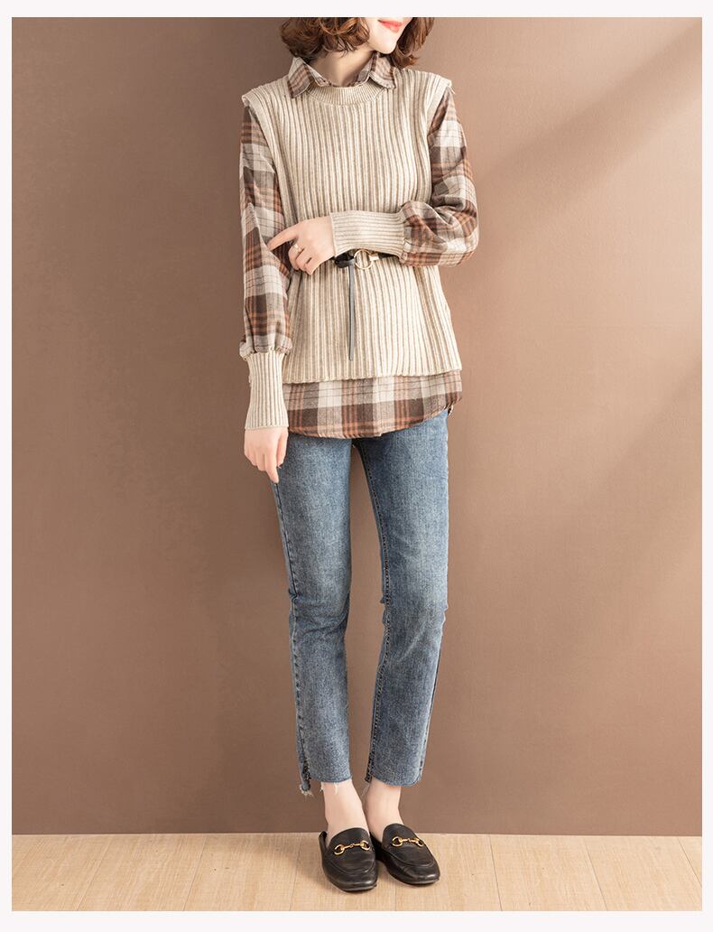 セットアップ ツーピース シャツ 長袖 チェック柄 ベスト ニットベスト 大人カジュアル デート 秋