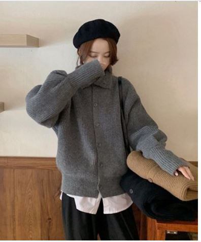 カーディガン ニットカーディガン 長袖 フロントボタン シンプル 無地 ざっくり 厚手 秋 冬