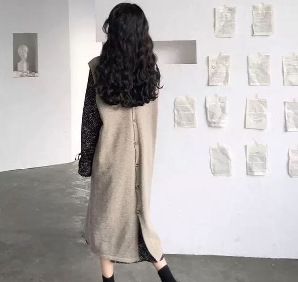 ツーピース セットアップ ワンピース 長袖 膝丈 ドット柄 ベスト ニットベスト ロングベスト 大人カジュアル
