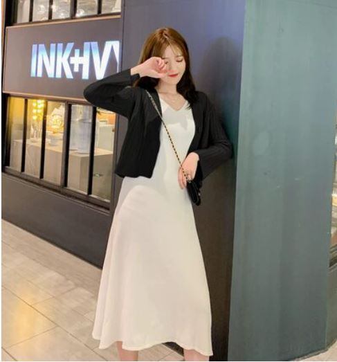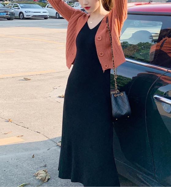 大人カジュアルなニットカーディガンと膝丈ワンピースのセットです♪
