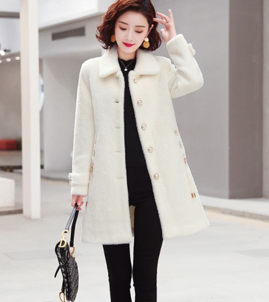 コート ボアコート 長袖 ミドル丈 襟付き シンプル 無地 きれいめ 上品 パールボタン デート お出かけ