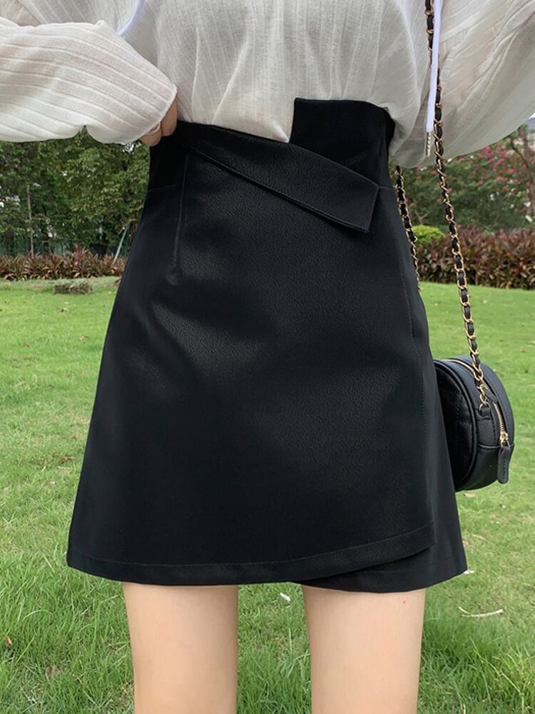 スカート レザー ミニ ショート コーヒー ブラック レッド ハイウエスト おしゃれ