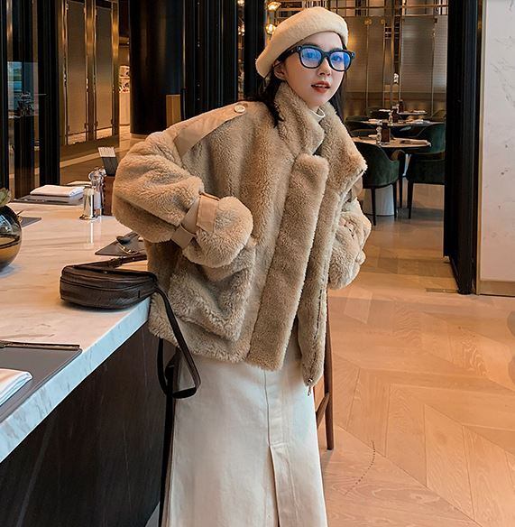 ブルゾン コート ボアブルゾン 長袖 ショート丈 モコモコ 厚手 シンプル 無地 大人カジュアル 秋 冬