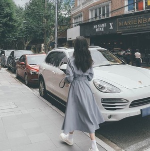 大人カジュアルな無地デザインのミモレ丈ワンピースです♪