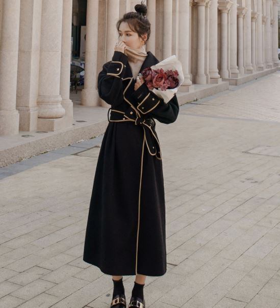 コート ロングコート 長袖 ウエストベルト バイピングデザイン シンプル 無地 大人カジュアル きれいめ