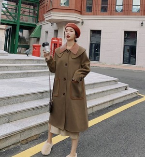 コート ウールコート ロングコート 長袖 大きめ襟デザイン シンプル 無地 きれいめ 大人カジュアル
