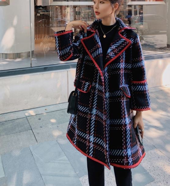 きれいめな格子チェック柄のミドル丈コートです♪