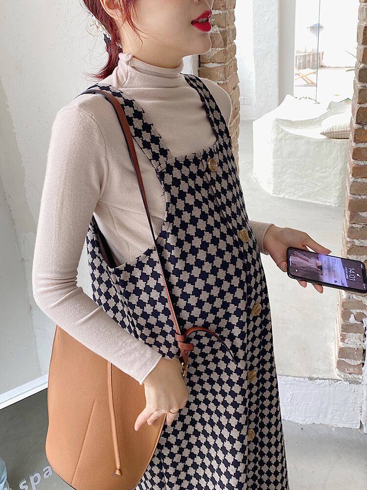 ワンピース ノースリーブ ミモレ丈 フロントボタン アーガイル柄 きれいめ 大人カジュアル デート