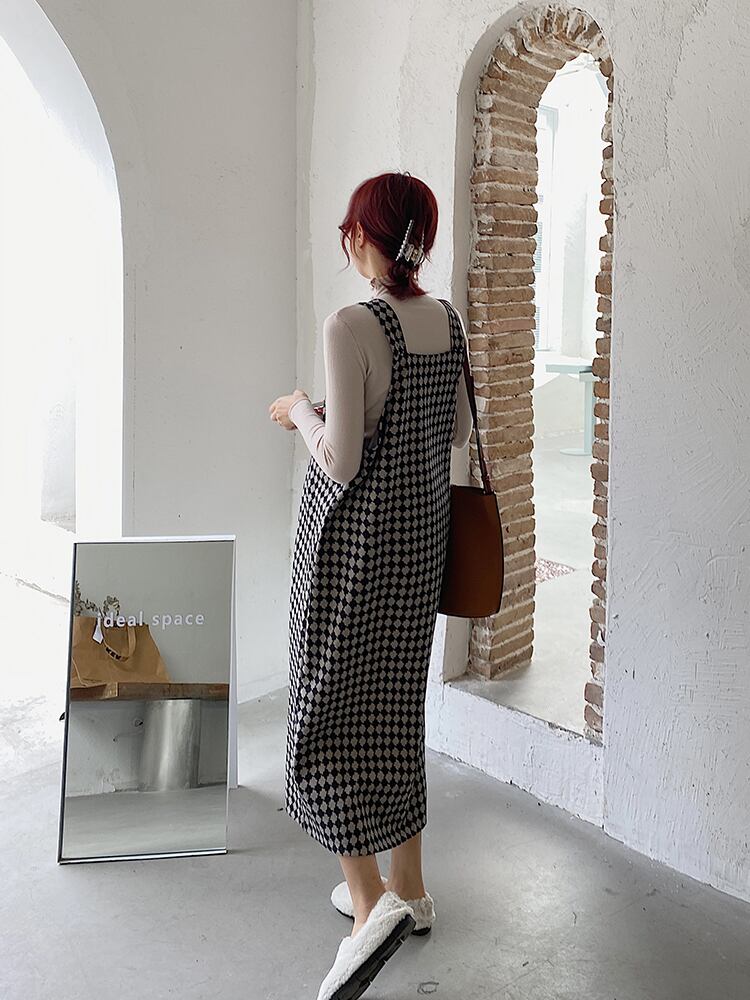 大人カジュアルなアーガイル柄のミモレ丈ワンピースです♪