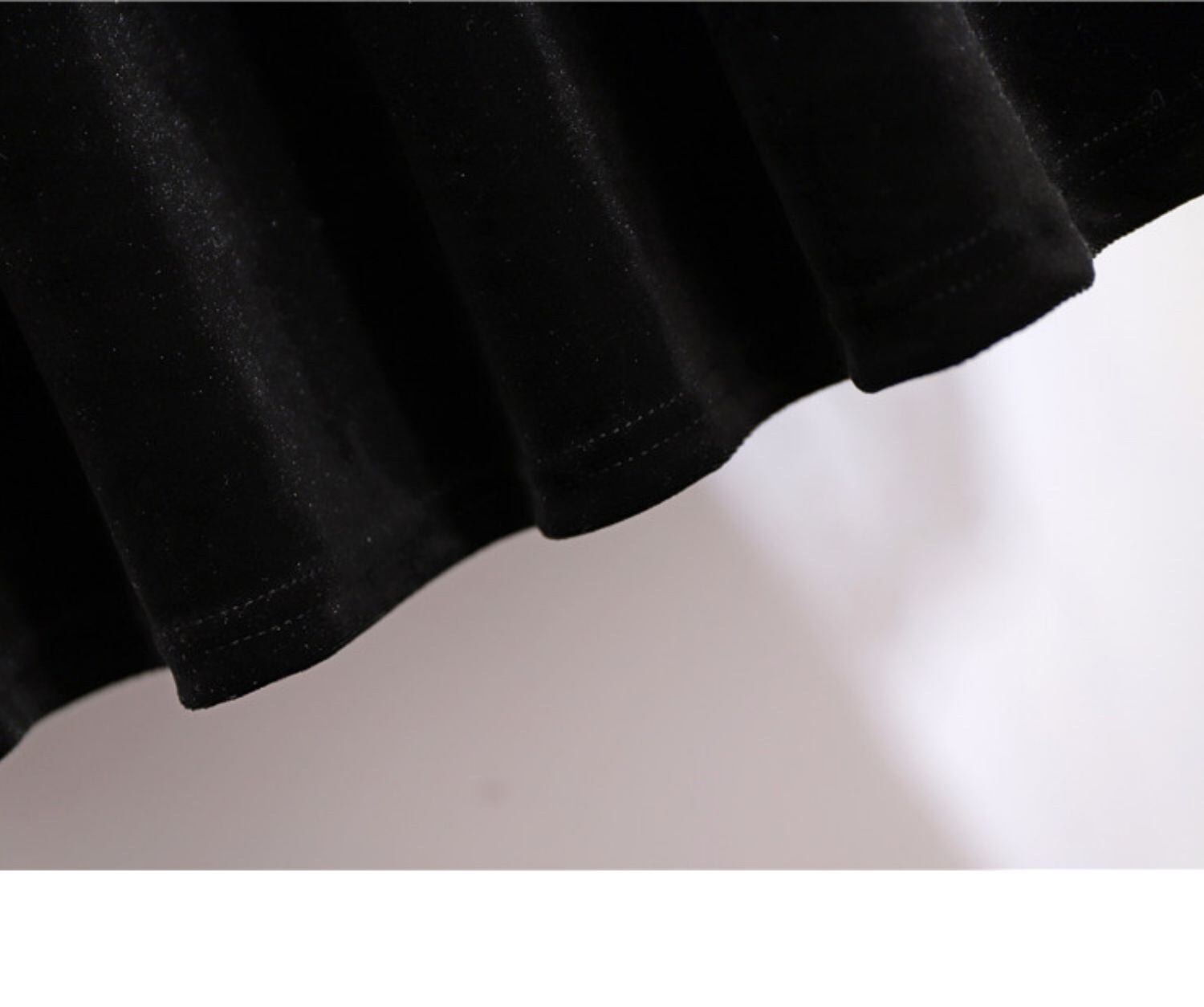 ワンピース 長袖 膝丈 フレア ベロア レース パールボタン シンプル 無地 きれいめ 上品 フォーマル