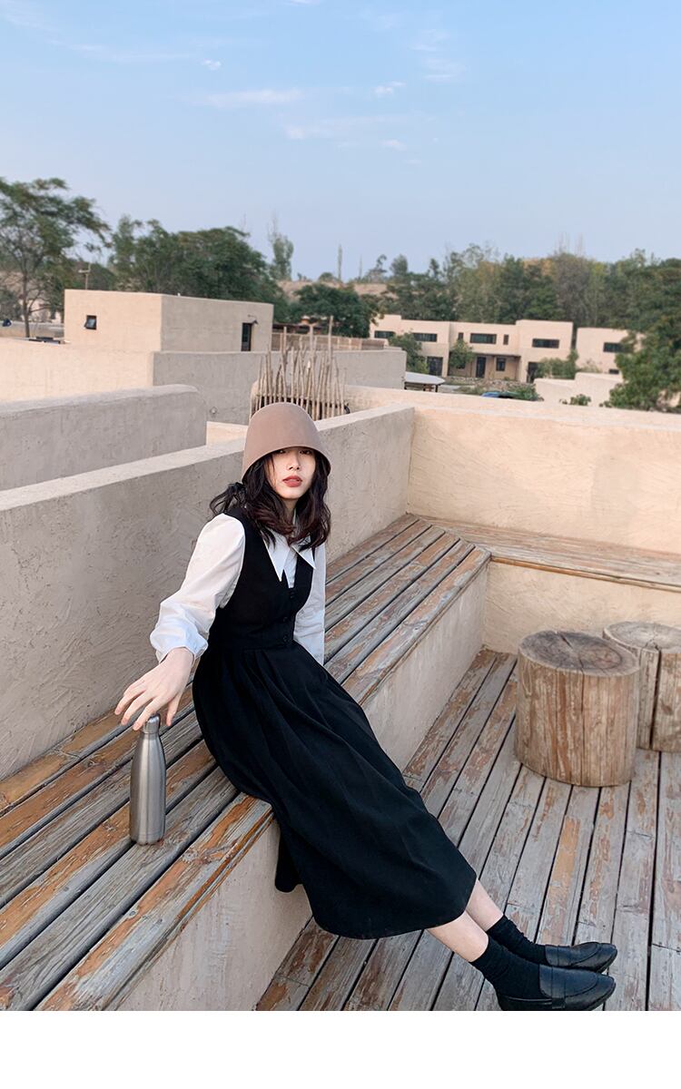 ワンピース ジャンパースカート ノースリーブ ミモレ丈 フレア Vネック 大人カジュアル 無地 お出かけ