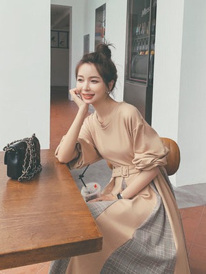 2種類の生地が合わさった、おしゃれなロングワンピース♪