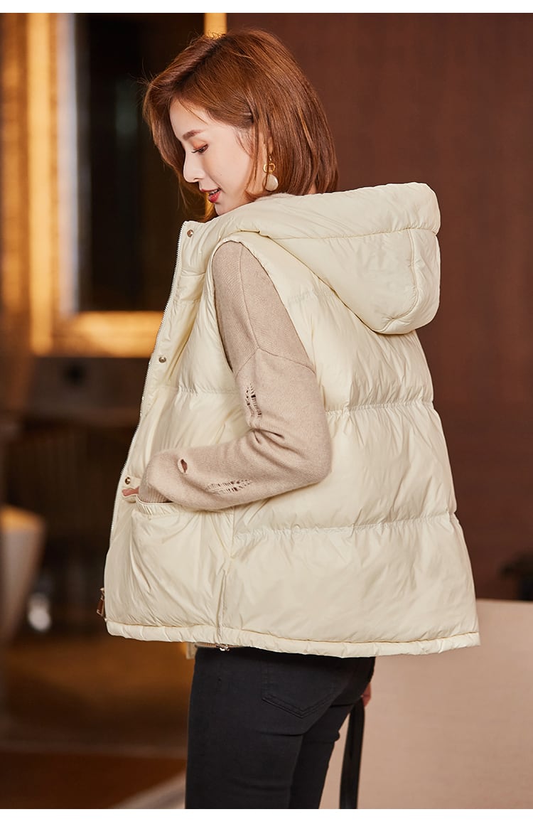 ベスト ダウンベスト シンプル 無地 カジュアル フード付き デート お出かけ 秋 冬