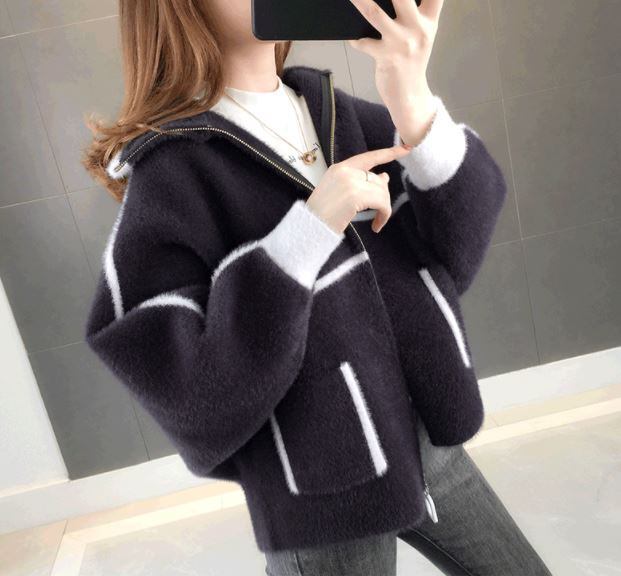 ブルゾン ニットブルゾン ジャケット 長袖 ショート丈 シンプル 無地 きれいめ カジュアル 冬