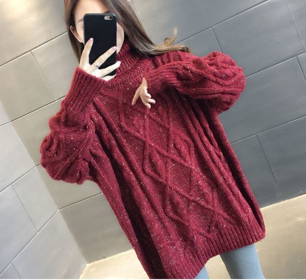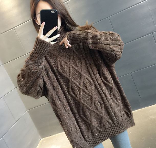 ニット セーター 長袖 ハイネック シンプル 無地 大人カジュアル ざっくり編み デイリー 秋 冬