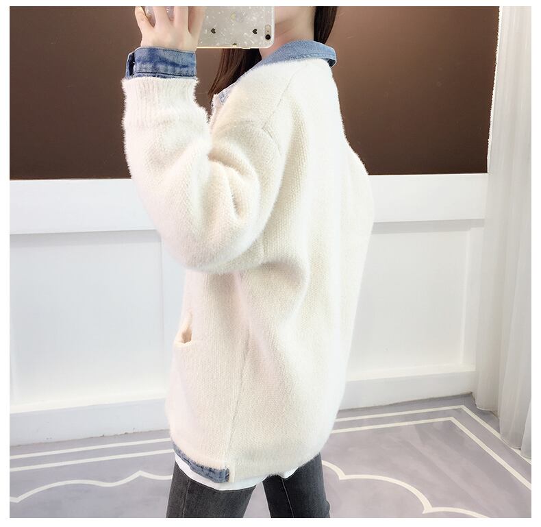 カーディガン ニットカーディガン 長袖 デニム 重ね着風 シンプル 無地 大人カジュアル デート 冬