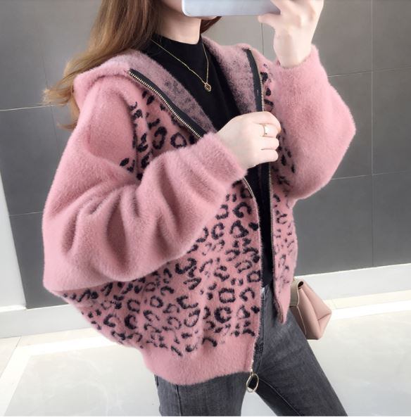 大人カジュアルなレオパード柄デザインのニットパーカーです♪