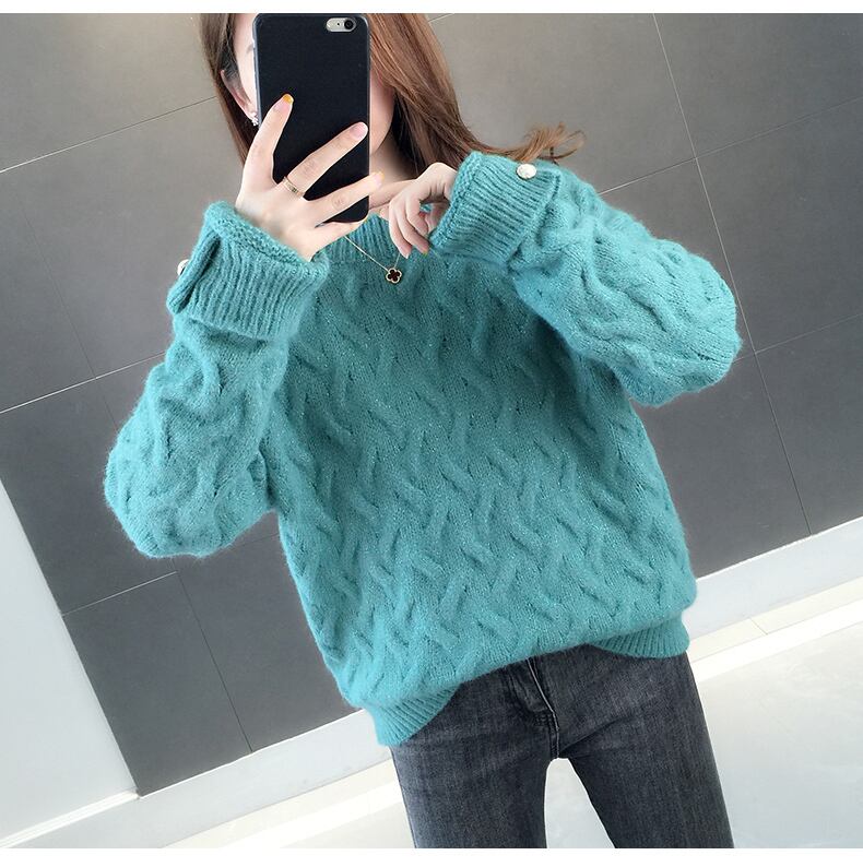 ニット セーター 長袖 ざっくり編み シンプル 無地 大人カジュアル パールボタン 厚手 冬