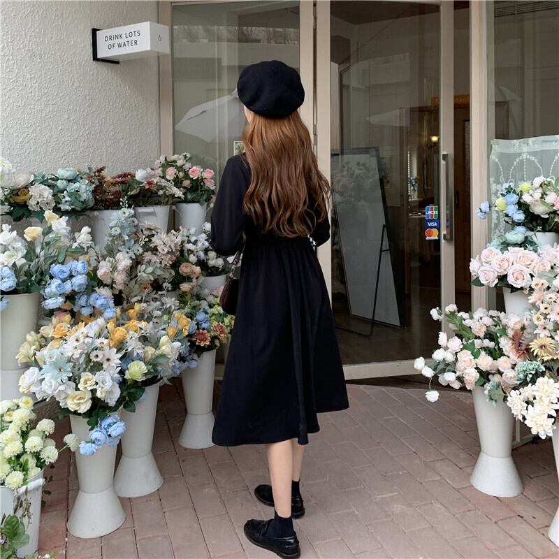 シンプルな無地ワンピースと千鳥格子柄のベストのツーピースです♪