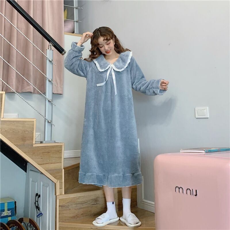 ワンピース ボアワンピース 長袖 ロング丈 リボン ボア モコモコ カジュアル 厚手 秋 冬