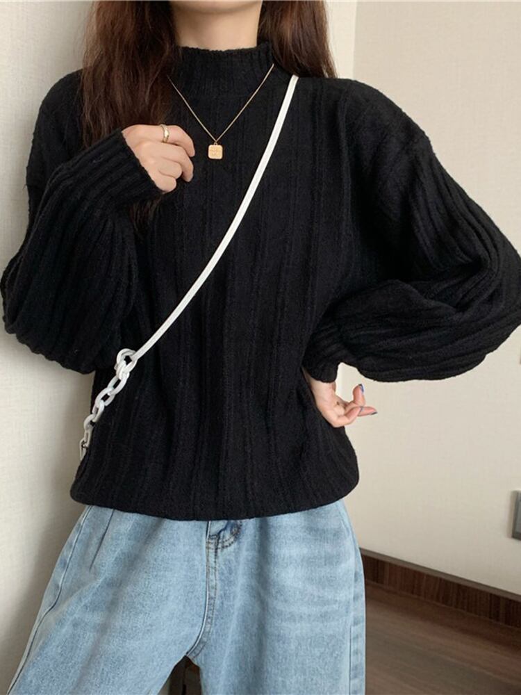 ニット セーター 長袖 ボトルネック シンプル 無地 大人カジュアル ゆったり デイリー 秋 冬