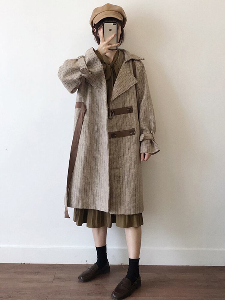 コート トレンチコート ヘリンボーン 大人カジュアル ウエストベルト ゆったり お出かけ 秋